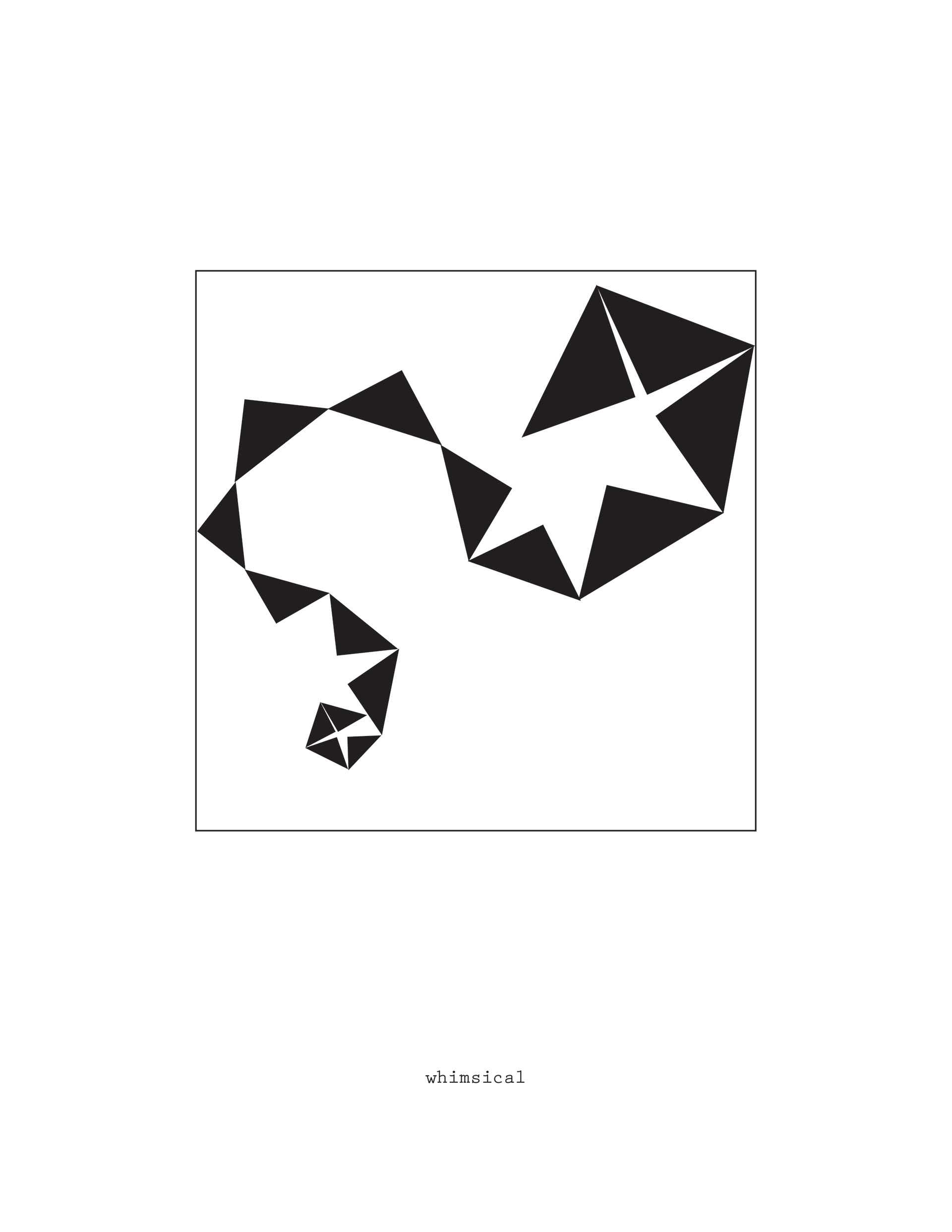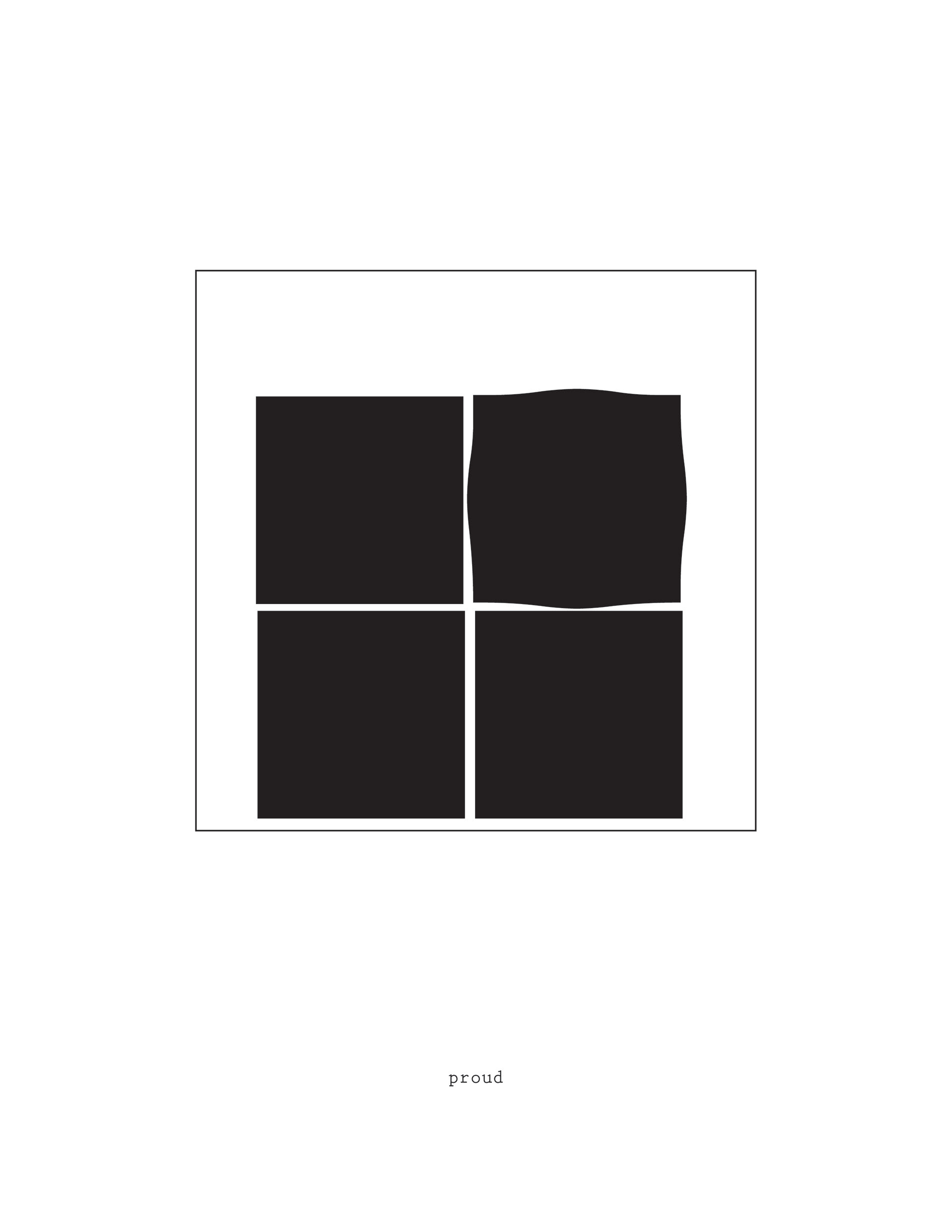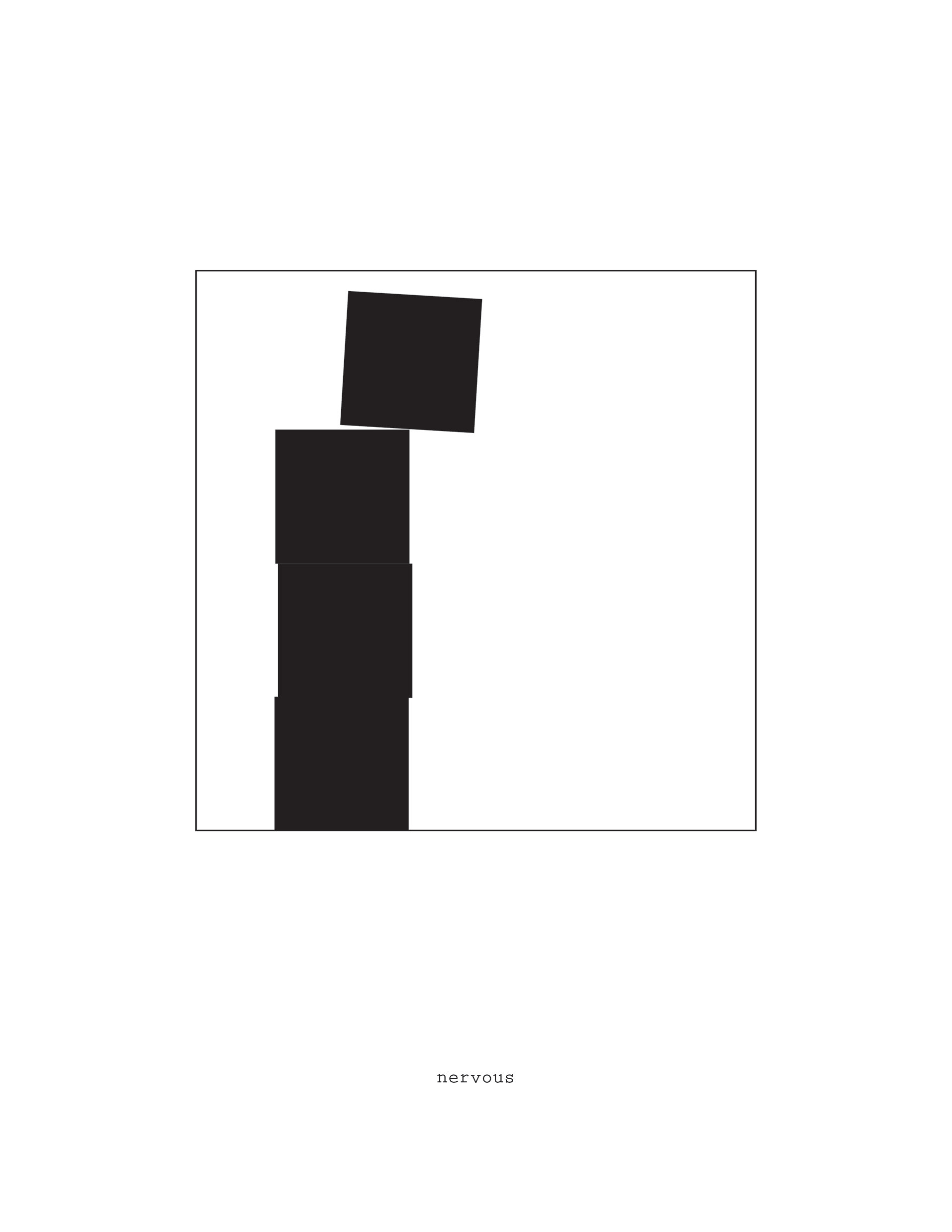 This project, completed for a graphic design class, required five separate compositions. Each uses exactly four black squares to demonstrate a single adjective: tense, proud, whimsical, awkward, and nervous.